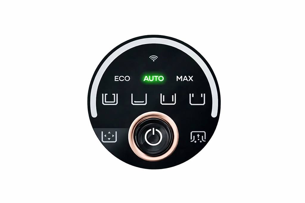 - AUTO: Automaticky upravuje sací výkon podle detekovaného znečištění bazénu