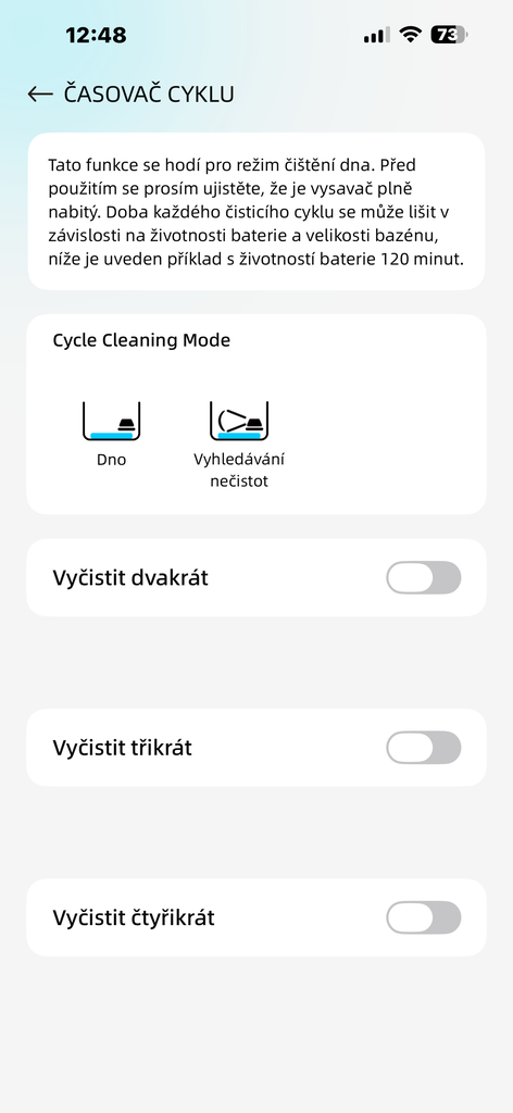 | Počet nastavitelných režimů čištění: | 8 |