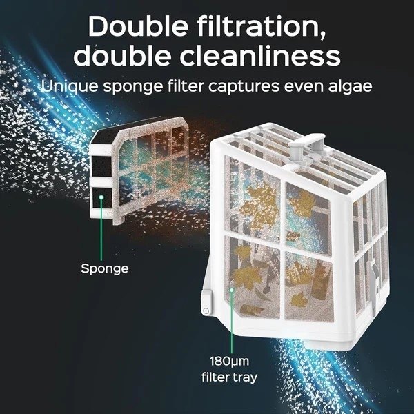 listy, jemný prach i další nečistoty. Filtrační systém je snadno