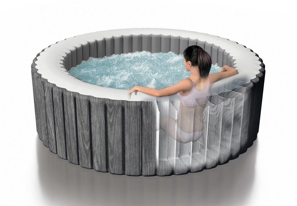Nová generace vířivek INTEX v dekoru dřeva nabízí wellness zážitek na nejvyšší úrovni. Vířivka Pure Spa o vnějším průměru 196 a výšce stěny 71 cm poskytuje místo až 4 osobám.