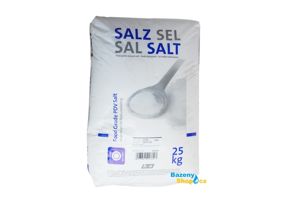 Vakuová sůl jedlá nejodidovaná vhodná pro použití v bazénech a vířivých vanách.