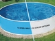 S bazénem je dodávána modrá bazénová fólie o tloušťce 0,225mm, která se přehnutím přes stěnu bazénu poté zajistí plastovou lištou.