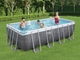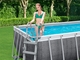 Bazén Bestway obdélník s konstrukcí (vodní kapacita cca 11532 litrů) je samonosný rodinný bazén. Nadzemní bazén pro povrchovou montáž je vyroben z trojvrstvého PVC.