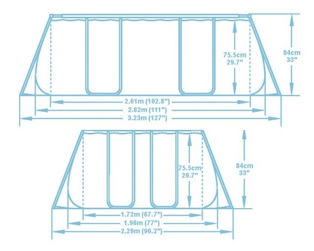Bazén Bestway obdélník s konstrukcí (vodní kapacita cca 3662 litrů) je samonosný rodinný bazén. Nadzemní bazén pro povrchovou montáž je vyroben z trojvrstvého PVC. Díky své kovové konstrukci je velmi pevný a stabilní. Dlouhá životnost. Upoutá svou jednoduchou montáží.