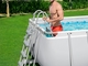 Bazén Bestway obdélník s konstrukcí (vodní kapacita cca 11532 litrů) je samonosný rodinný bazén. Nadzemní bazén pro povrchovou montáž je vyroben z trojvrstvého PVC.