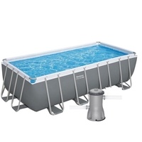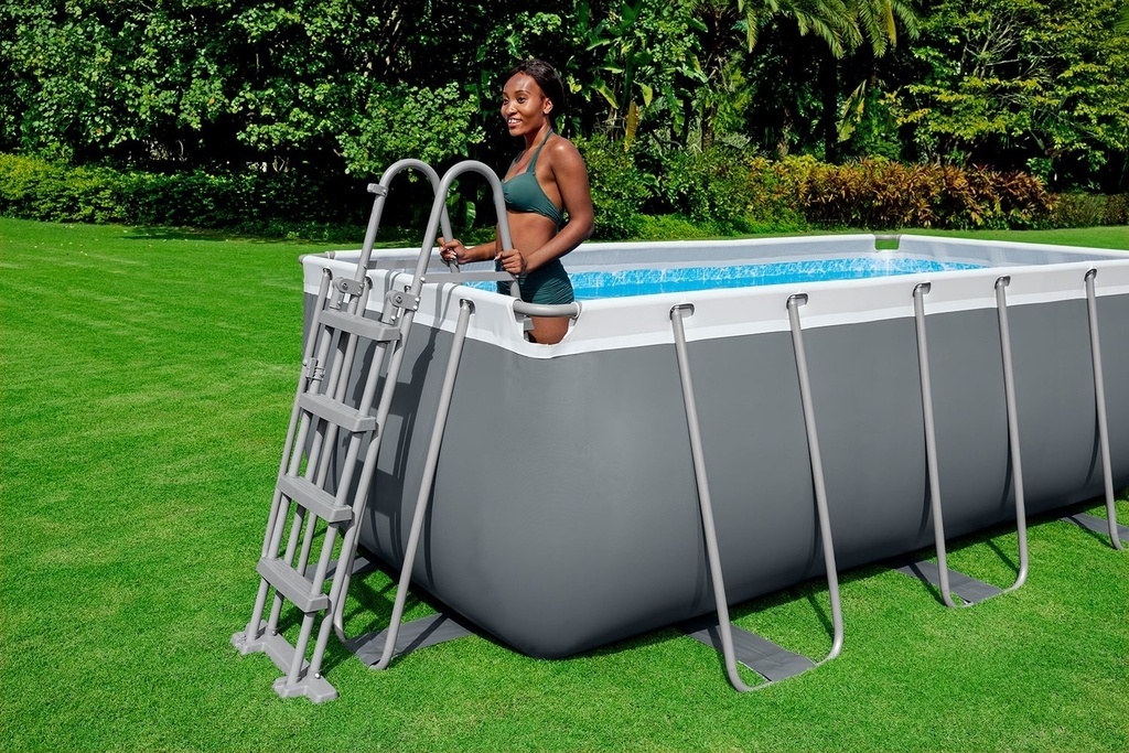 Bazén Bestway obdélník s konstrukcí (vodní kapacita cca 11532 litrů) je samonosný rodinný bazén. Nadzemní bazén pro povrchovou montáž je vyroben z trojvrstvého PVC.