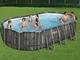 Bazén Bestway Wood ovál s konstrukcí 6,10 x 3,66 x 1,22m je zahradní nadzemní bazén pro povrchovou montáž. Včetně pískové filtrace a bezpečnostních schůdků.
