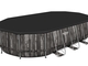 Bazén Bestway ovál s konstrukcí (vodní kapacita cca 20241 litrů při 90% napuštění) je samonosný rodinný bazén. Nadzemní bazén pro povrchovou montáž je vyroben z trojvrstvého PVC. Díky své kovové konstrukci je velmi pevný a stabilní. Dlouhá životnost. Upoutá svou jednoduchou montáží.