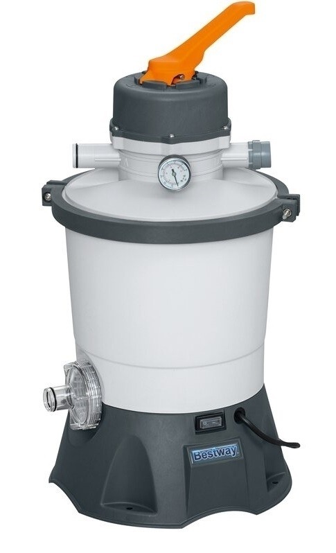 - písková filtrace 2m3/hod včetně propojovacích hadic. Písková náplň filtrace (8,5kg) není součástí dodávky!