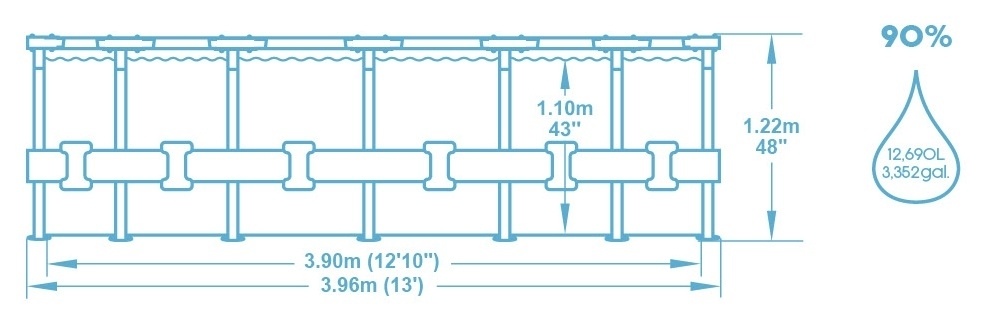 - Mimořádně pevné stěny tohoto bazénu jsou konstruovány z materiálu Dura Plus™, což je 3vrstvý vyztužený materiál s polyesterovou mřížkou uloženou mezi dvěma vrstvami vysoce odolného PVC. Nabízí mimořádnou pevnost a odolnost.