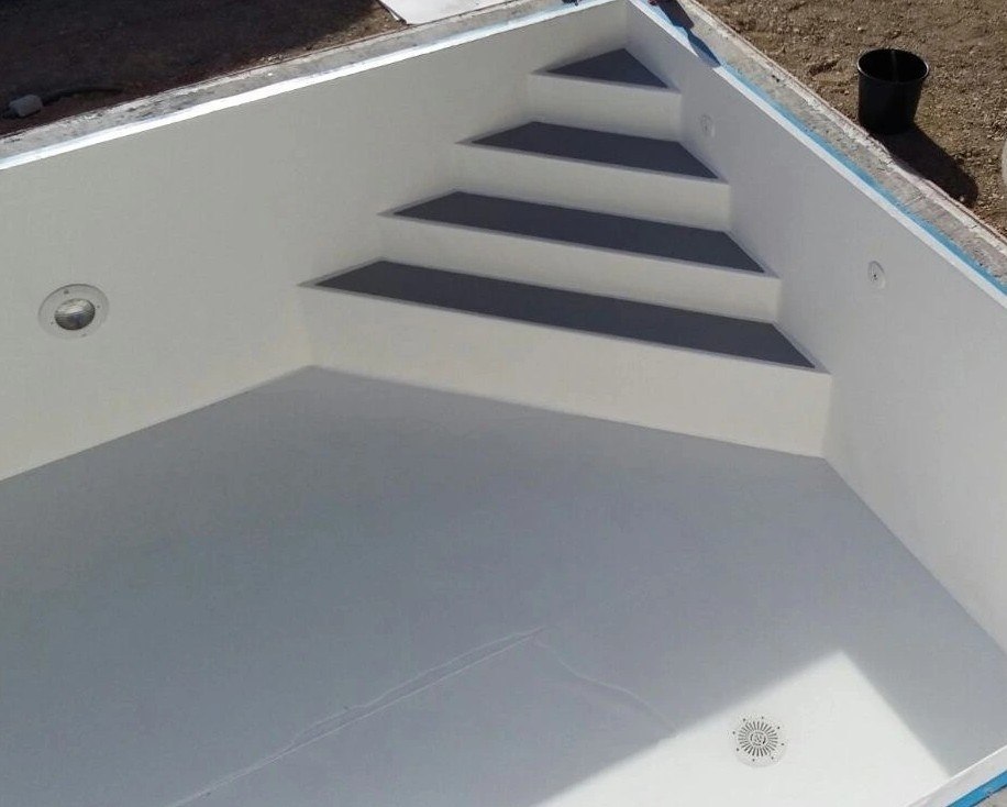 Fólie má tloušťku 0,8 mm v barě modré žuly. Fólie odolává bazénové