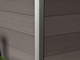 Materiál: kompozitní směs dřeva a polymerů. Horní kryty lišt jsou vyrobeny z oceli. Vertikální lišty stěn jsou z hliníku.