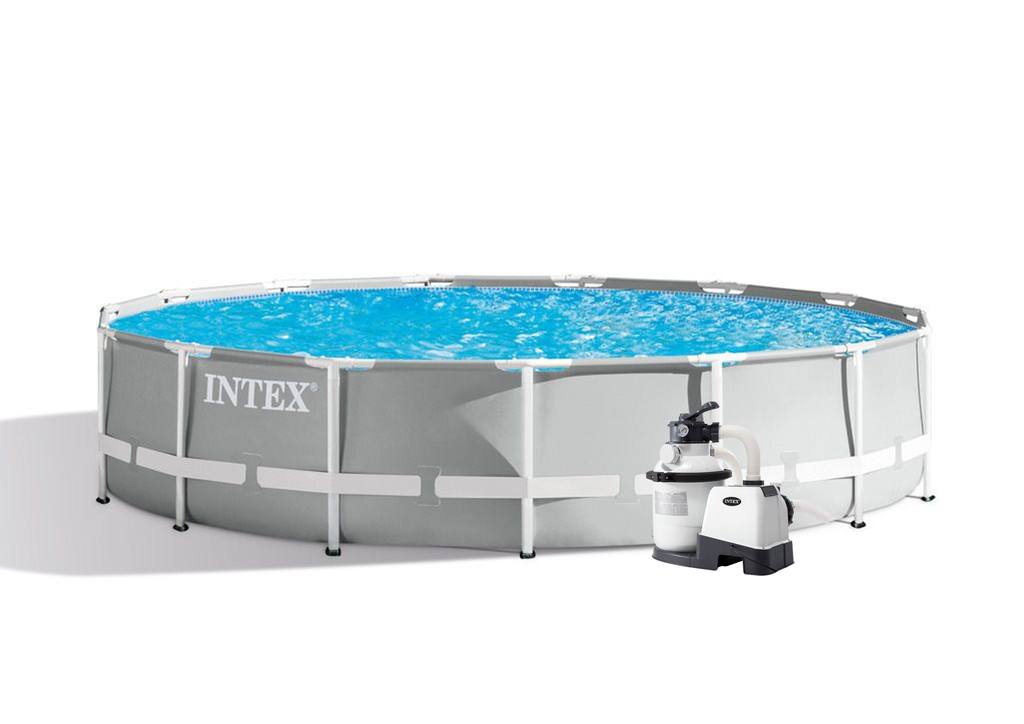 Bazén INTEX Prism Frame 4,57 x 1,07m je zahradní bazén s kovovým rámem pro povrchovou montáž. Včetně pískové filtrace 4m3/hod a příslušenství.