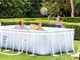 Bazén INTEX Prism Frame Chevron 4,00 x 2,00 x 1,00m je nadzemní bazén s kovovým rámem pro povrchovou montáž. Včetně kartušové filtrace 2.006 l/hod a bezpečnostních schůdků.