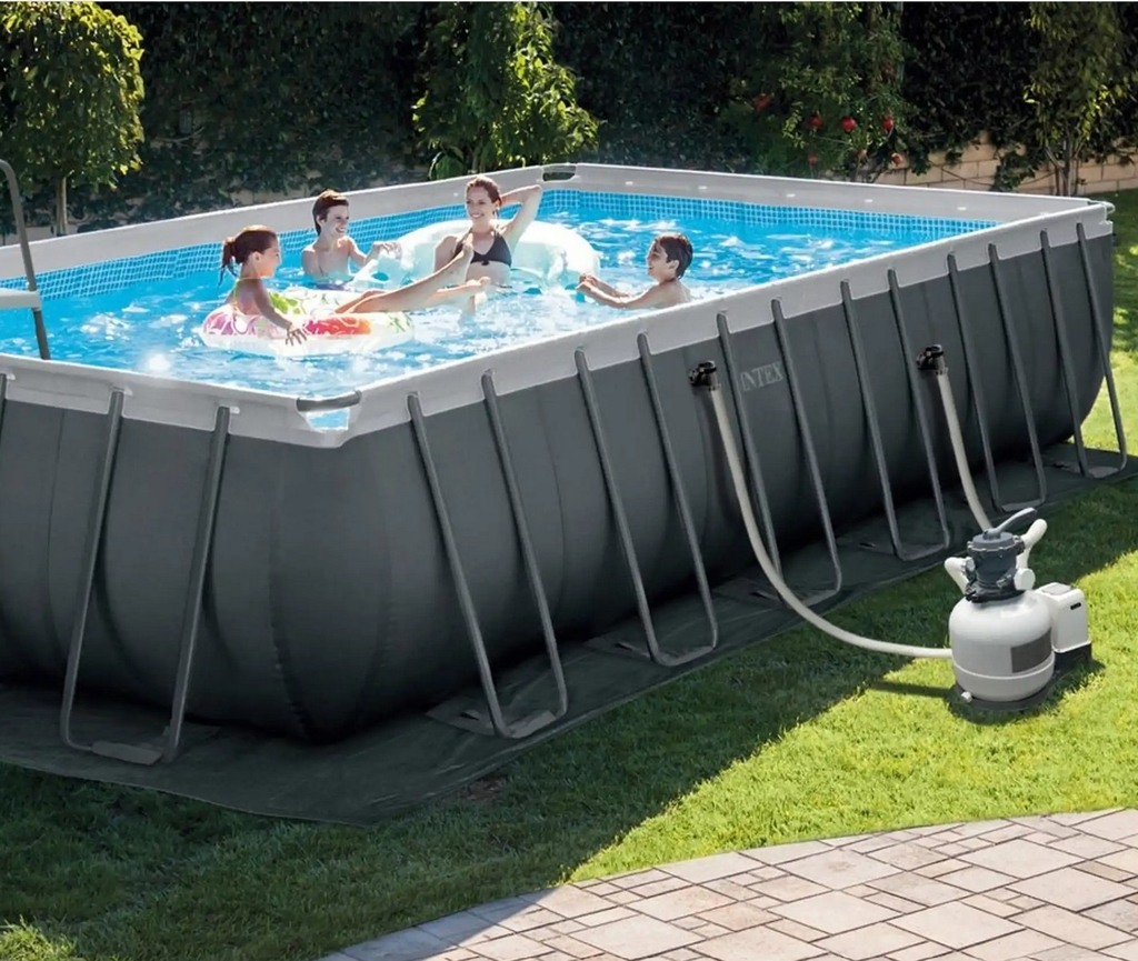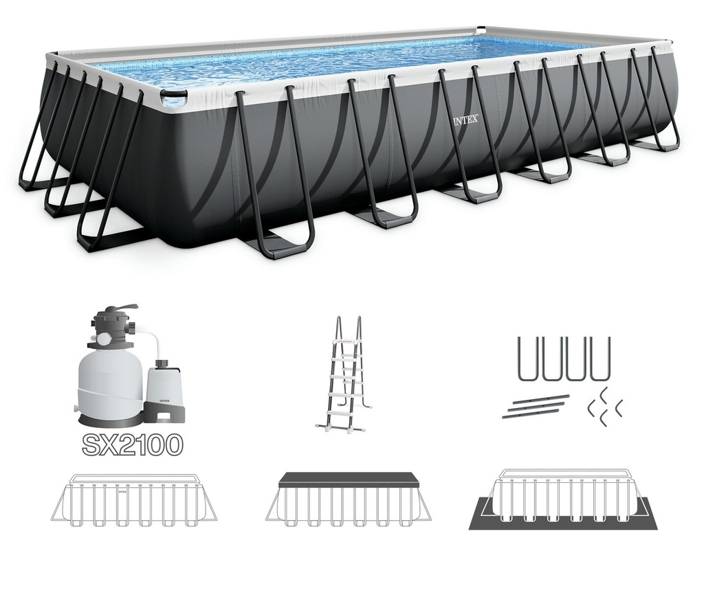 Bazén INTEX Rectangular Ultra Frame XTR 732 x 366 x 132cm pevný a pružný nadzemní bazén. Včetně pískové filtrace 6m3/hod a příslušenství.