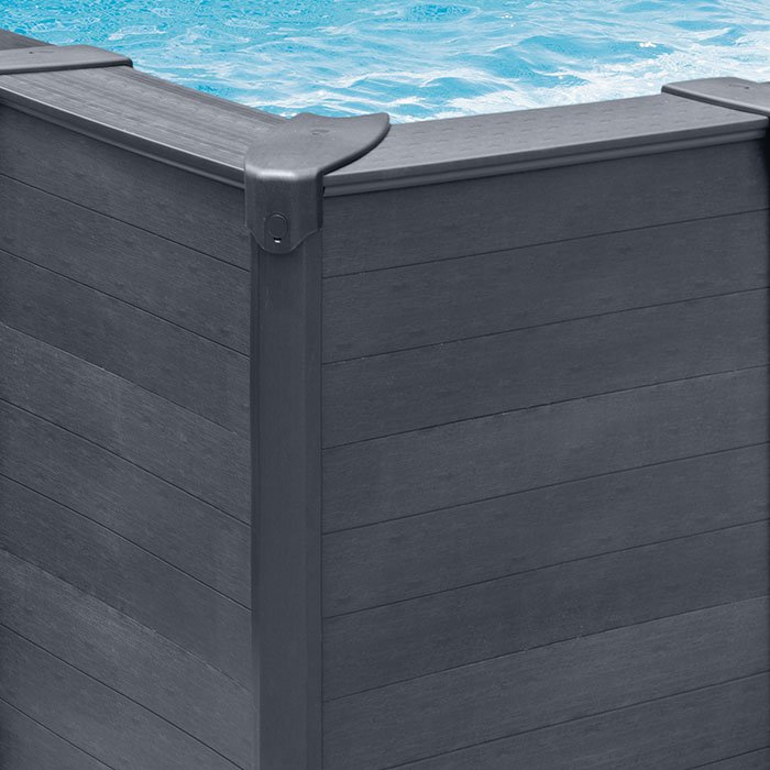 S velikostí 4 × 3 × 1,24m nabízí celé rodině místo ke hraní, dovádění a nebo relaxaci. Plastové panely zhotovené v grafitové barvě mají nejen kvalitní vzhled přírodního dřeva, ale zároveň zajišťují stabilitu, pevnost a odolnost. Tento bazén se dodává s rozsáhlým příslušenstvím včetně pískového filtračního zařízení. Objem vody při naplnění 90 % 10.100 l. O optimální filtrování se stará písková filtrace 4.000 l/h nacházející se v balení. Tato filtrace přináší nejen velmi dobrý výsledek filtrování, ale také obsahuje všechny potřebné přípojky. Krycí plachta a podložka na ochranu dna zajistí dodatečnou ochranu Vašeho bazénu a snižují míru jeho znečištění. S bazénem dodávané bezpečnostní schůdky představují nejen pohodlný vstup a výstup z bazénu, ale zároveň díky odnímatelným stupňům, zabraňují neoprávněnému přístupu do bazénu.