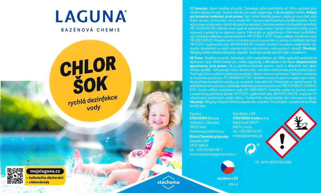 Slouží jako rychlý dezinfekční přípravek pro celosezónní údržbu všech typů bazénů a především pro jednorázovou "šokovou" úpravu bazénové vody po napuštění nebo při silném znečištění. Likviduje řasy a baktérie.