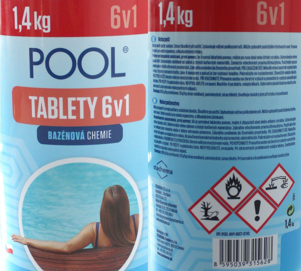 POOL-Laguna KOMBI tablety 6v1 je moderní víceúčelový přípravek pro celosezónní průběžnou upravu vody ve všech typech bazénů. Likviduje baktérie a řasy, zabraňuje jejich růstu, umožňuje vyvločkování drobných nečistot, stabilizuje aktivní chlor a stabilizuje tvrdost vody.