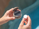 Malý plovoucí dávkovač plastový s mřížkou na malé chemické tablety.