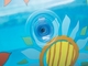 Nafukovací bazének s kreslenými motivy ve tvaru obdélníku.