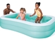 Nafukovací bazén na zahradu v originální modré barvě přímo láká ke koupání.