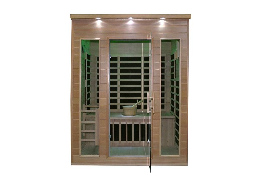 Tato sauna v sobě kombinuje jak finskou saunu, tak i infrasaunu. Pokud nemáte rádi v sauně tak vysokou teplotu, oceníte možnost zapnutí pouze infračervených zářičů. V sauně je 8 karbonových topidel. Kamna finské sauny pracují na základě termoterapie – léčebné metody, která využívá příznivé účinky mírného přehřátí tkání. Současné zapnutí saunových kamen a zářičů možné není.