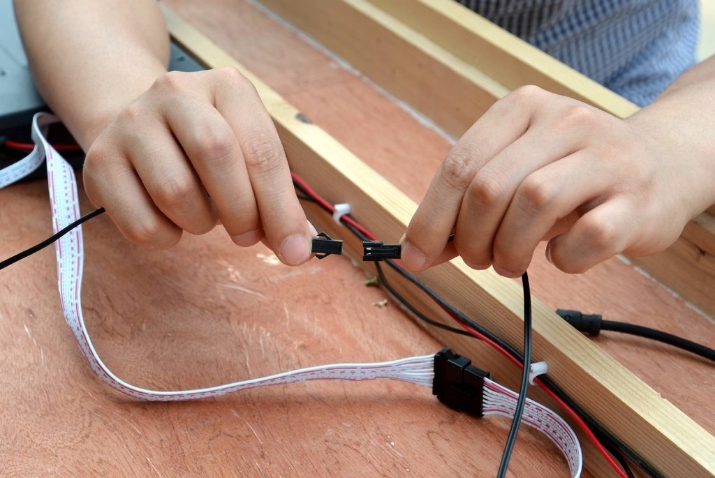 Montáž Montáž infrasauny je rychlá a jednoduchá. K přichycení jednotlivých částí se používají kufrové spony, čepy nebo klasické šrouby. Elektroinstalace je již namontovaná od výrobce, pouze stačí propojit kabeláž pomocí zásuvek a konektorů. Vše je přehledně označené.