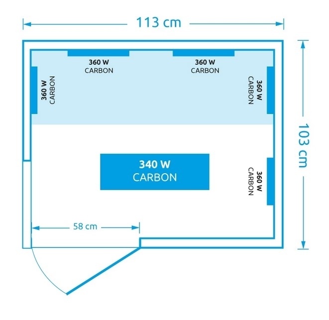 Topidla V infrasauně je rozmístěno 6 karbonových topidel. Ve srovnání s jinými typy karbonové zářiče tvoří tenké pásy, které vyvinou povrchovou teplotu 70 – 170 stupňů Celsia. Karbonové zářiče dosáhnou maximální teploty pomaleji, naproti tomu mají delší životnost (při saunování 3× týdně cca 90 let). Tento typ zářičů prohřeje lidské tělo rovnoměrně a do hloubky.