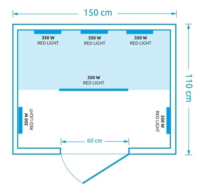 Topidla V infrasauně je rozmístěno 6 redlight topidel. Redlight topidla pracují s povrchovou teplotou 250 až 300 stupňů Celsia. Ve srovnání s karbonovými se redlight zářiče zahřejí velice rychle. Nevýhodou může být vyšší spotřeba, ale vždy záleží na typu infrasauny. Pořizovací náklady tohoto typu zářičů jsou nižší, životnost je cca 8 000 hodin. Při běžném saunování (3× týdně 45 min) vydrží cca 60 let. Redlight topidla dosahují téměř okamžitě požadované teploty. Jsou tvořeny trubicemi z křemičitého skla, které kromě intenzivního sálavého tepla vyzařují také světlo umocňující jejich blahodárné terapeutické účinky. Vyzařují teplo na krátkých vlnových délkách.