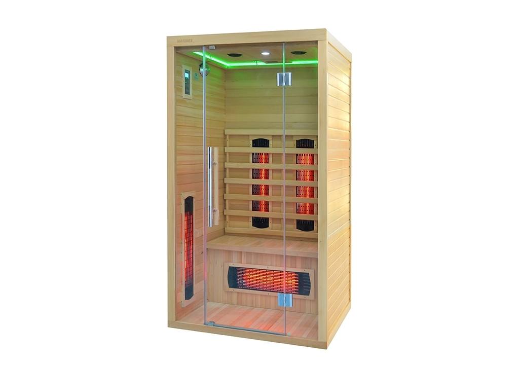 Infrasauna Marimex POPULAR 3003 XL je vhodná až pro 3 osoby. Výhodou je funkce LED harmony, díky které si užijete relaxaci užitím tlumeného uklidňujícího barevného spektra LED osvětlení. Do výbavy infrasauny se řadí také rádio s mp3 přehrávačem a bluetooth, střešní ventilace a teplotní senzor. V infrasauně je rozmístěno 6 redlight topidel. Redlight topidla pracují s povrchovou teplotou 250 až 300 stupňů Celsia.