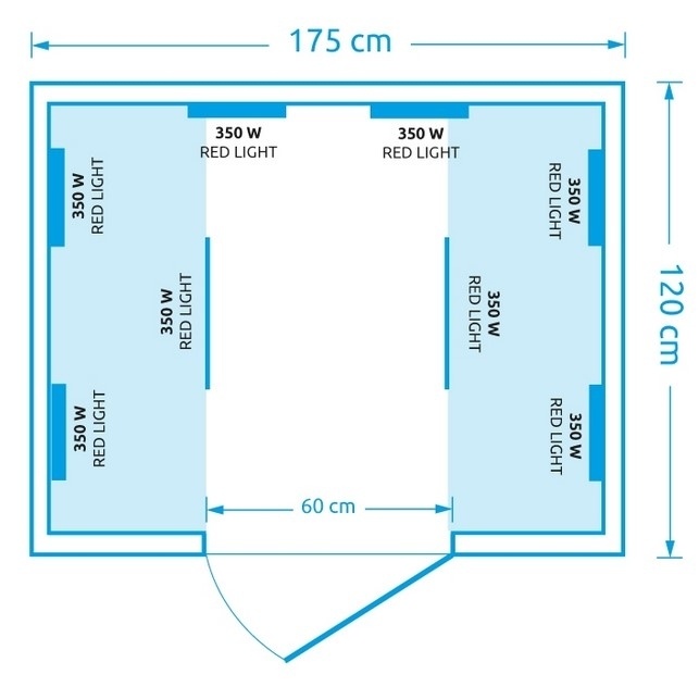 Topidla V infrasauně je rozmístěno 8 redlight topidel. Redlight topidla pracují s povrchovou teplotou 250 až 300 stupňů Celsia. Ve srovnání s karbonovými se redlight zářiče zahřejí velice rychle. Nevýhodou může být vyšší spotřeba, ale vždy záleží na typu infrasauny. Pořizovací náklady tohoto typu zářičů jsou nižší, životnost je cca 8 000 hodin. Při běžném saunování (3× týdně 45 min) vydrží cca 60 let. Redlight topidla dosahují téměř okamžitě požadované teploty. Jsou tvořeny trubicemi z křemičitého skla, které kromě intenzivního sálavého tepla vyzařují také světlo umocňující jejich blahodárné terapeutické účinky. Vyzařují teplo na krátkých vlnových délkách.