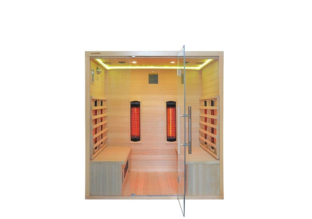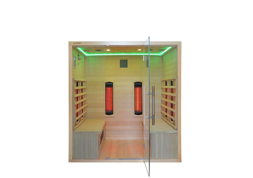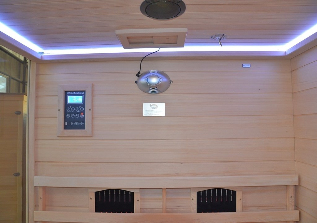 Velká infrasauna Marimex POPULAR 4003 XXL je vhodná až pro 4 osoby. Výhodou je funkce LED harmony, díky které si užijete relaxaci užitím tlumeného uklidňujícího barevného spektra LED osvětlení. Do výbavy infrasauny se řadí také rádio s mp3 přehrávačem a bluetooth, střešní ventilace a teplotní senzor. V infrasauně je rozmístěno 8 redlight topidel. Redlight topidla pracují s povrchovou teplotou 250 až 300 stupňů Celsia.