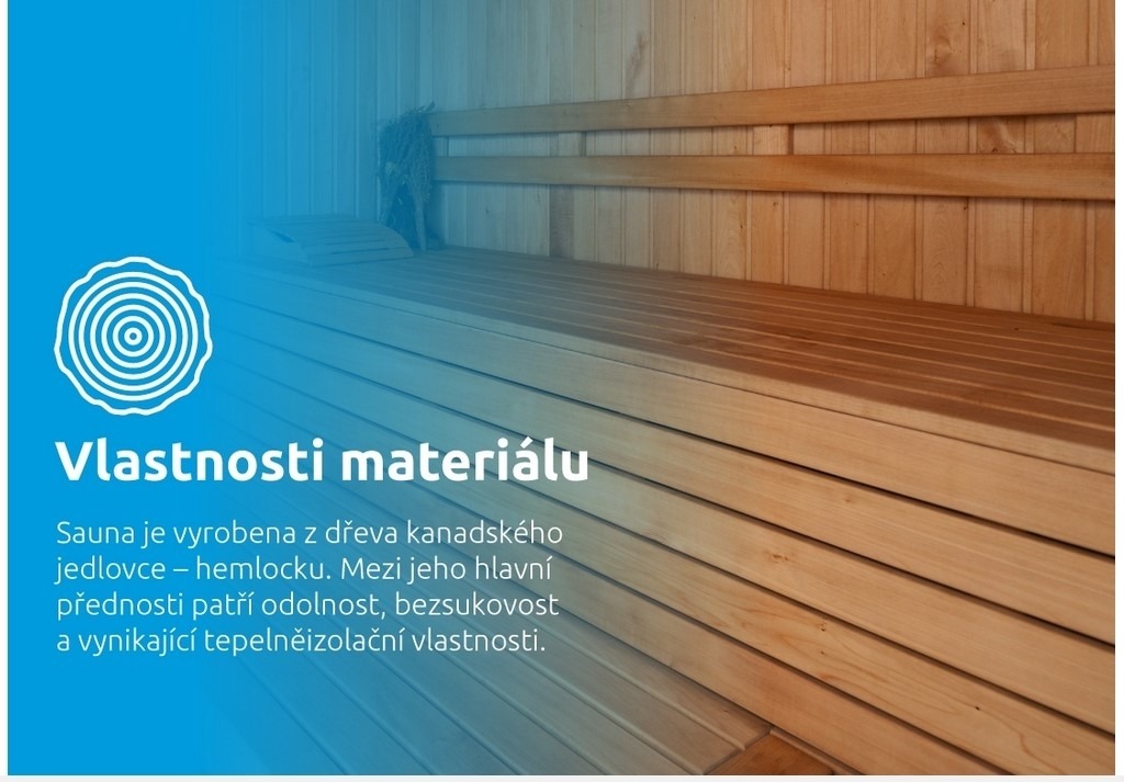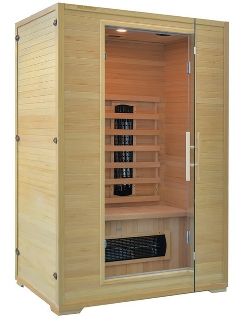 Popis produktu Infrasauna Marimex SMART 2001 L pro 2 osoby se díky svému universálnímu designu hodí do každého interiéru. Při výrobě bylo použito kvalitního dřeva kanadského jedlovce – hemlocku. Skleněné dveře umožňují pohodlný výhled po okolí sauny. Konstrukce infrasauny nedovoluje změnit směr otevírání dveří.
