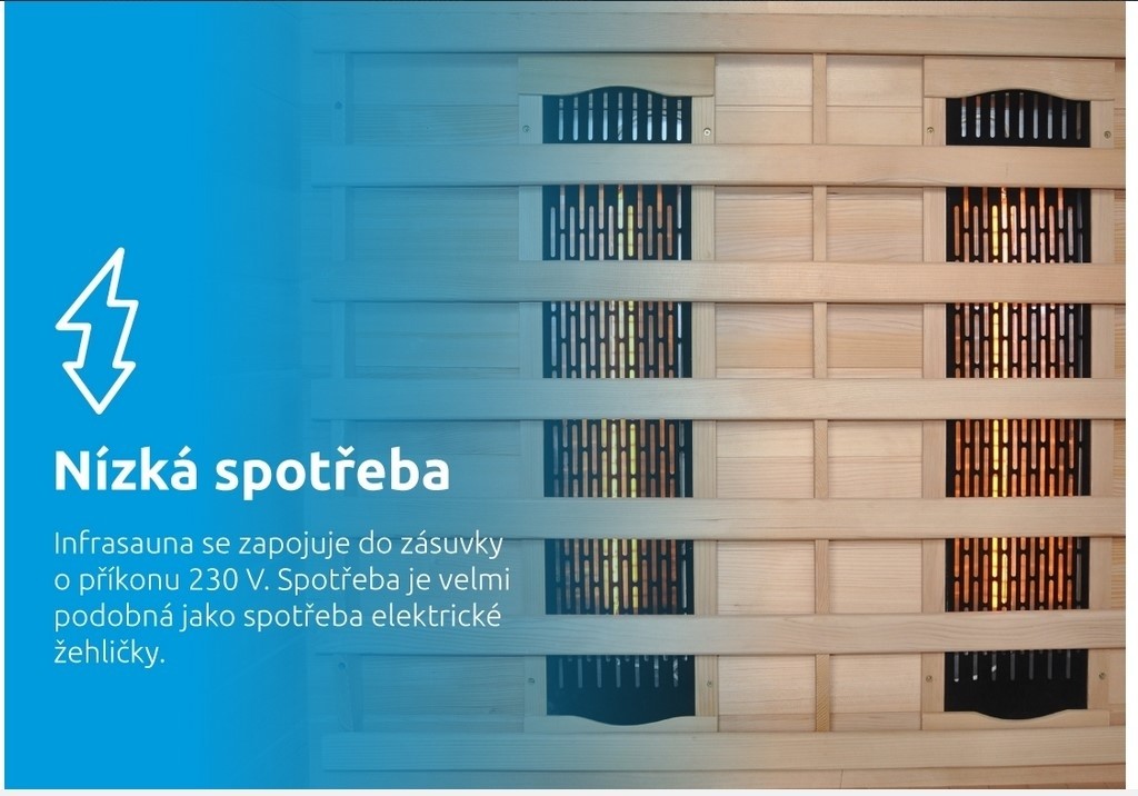 Spotřeba Provoz infrasaun je ve srovnání s klasickými saunami výrazně úspornější. Hlavním důvodem je nižší provozní teplota. Infračervené záření proniká hluboko do tkáně, proto není třeba saunovací proceduru opakovat v několika cyklech za sebou, jako tomu je u finské sauny.