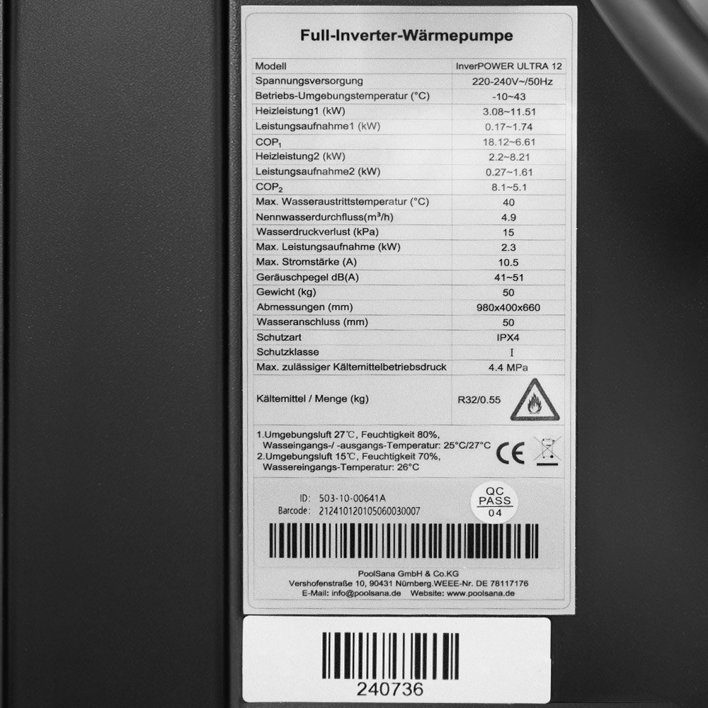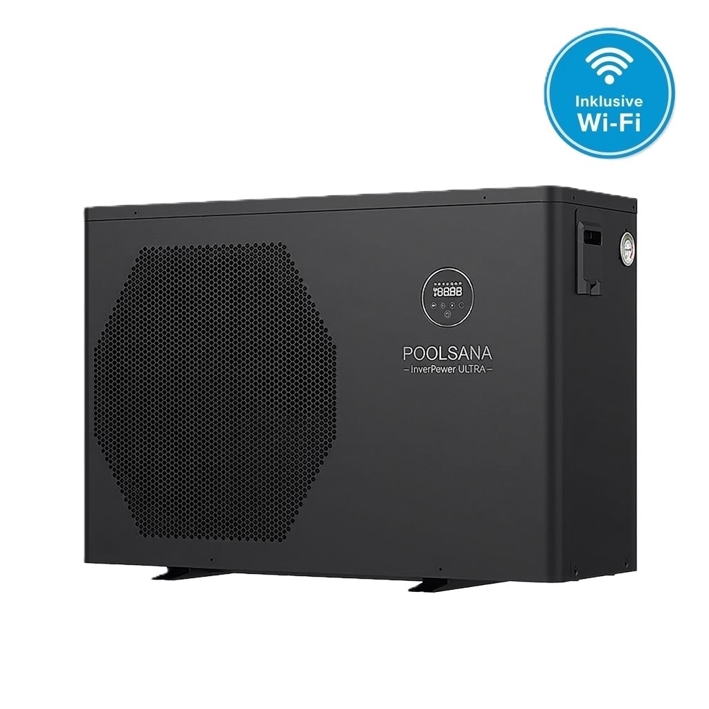 Tepelné čerpadlo POOLSANA InverPOWER ULTRA 9 s chlazením je vysoce efektivní a energeticky úsporné tepelné čerpadlo s technologií full-inverter nabízí až 9,48 kW topného výkonu při nízké spotřebě energie (0,11–1,44 kW) a ultra vysoký COP až 18,18. Elegantní kovový kryt, digitální ovládání s dotykovým displejem a integrovaná WiFi funkce umožňující pohodlné ovládání přes aplikaci. Tepelné čerpadlo podporuje topení, chlazení i automatický režim a je vhodné pro bazény do 35 m³.