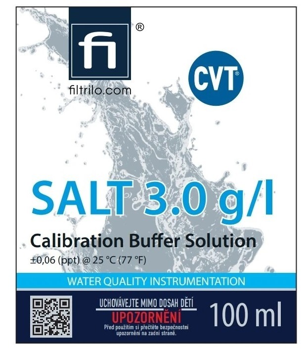 Kalibrační roztok soli NaCl 3,0 g/l je určen pro kalibraci a ověřování přístrojů a senzorů pro měření salinity (NaCl), případně pro ověřování přepočtů souvisejících s vodivostí a TDS (dle nastavení přístroje). Využití najde jak v laboratorní praxi, tak v provozních a průmyslových aplikacích. Jedná se o certifikovaný kalibrační roztok s metrologickou sledovatelností, určený ke kalibraci a ověřování senzorů v průmyslových aplikacích.