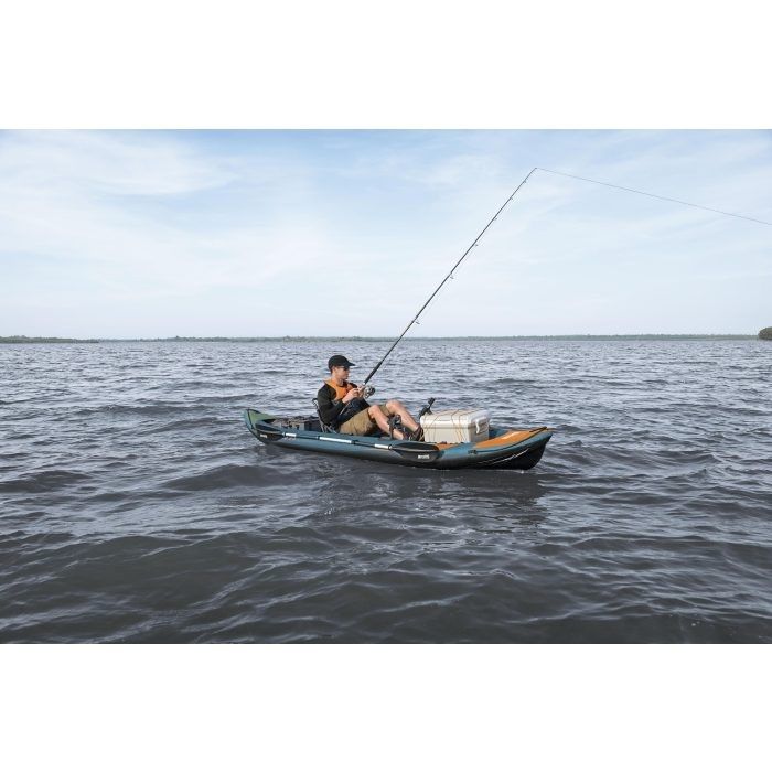 Hoďte rybářský prut a relaxujte na vodě s Hydro‐Force Angler EliteTM X1, nafukovacím rybářským kajakem pro dokonalý úlovek. Tento kajak nabízí vysoce kvalitní ripstop pouzdro, které je dvakrát silnější než PVC, pro vysokou pevnost a stabilitu tlaku, stejně jako lehkou podlahu FortiFiberTM Aire s technologií drop stehů a protiskluzovou EVA střední rohožkou pro větší rovnováhu.