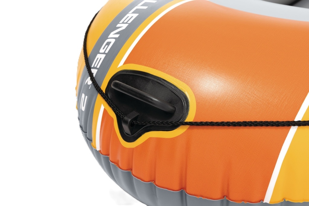 Díky nafukovacímu člunu Challenger™ 2 si užijete zábavné léto na vodě. Člun se skládá ze tří vzduchových komor, včetně pomocné komory uvnitř hlavního trupu pro zvýšení bezpečnosti. Je vyroben z vylepšeného robustního PVC materiálu, vysoce odolného proti poškození. Nafukovací podlaha s I-nosníkem je navržena pro větší pevnost a pohodlí. Pomocí dvou bostonských ventilů lze člun rychle nafouknout a vyfouknout. Pro snadnou manipulaci s člunem je po celém obvodu upevněno lano a na přídi je svařené pevné madlo. Po stranách jsou připevněné zámky vesel i držáky na vesla. Součástí sady je pumpa a dvě hliníková vesla. Tento model je navržen pro maximálně dvě osoby. Ať už jde o relaxaci nebo veslování na jezeře, tato loď je ideální pro vaše dobrodružství.