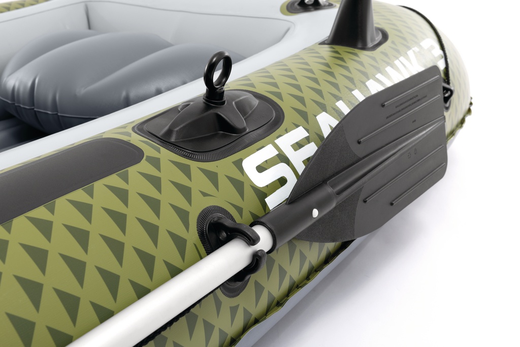 Nafukovací člun Seahawk 3 set určený pro 3 osoby. Sada obsahuje člun, dvě pádla a ruční pumpu.