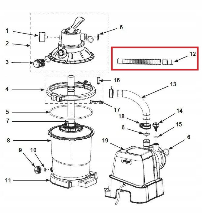 Propojovací hadice mezi čerpadlem a ovládacím ventilem pro pískovou filtraci INTEX 26642.
