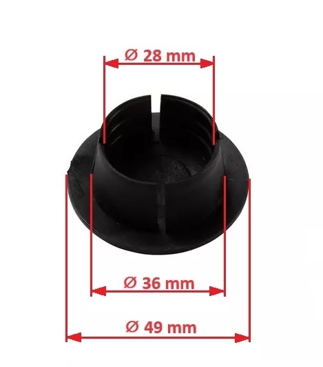 - Vnitřní průměr pro vsunutí na plastový čep: cca 28 mm