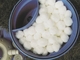 Polyetylenové bílé pěnové kuličky o průměru cca. 55–60 mm