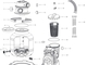Filtrační zařízení se skládá z plastové podstavy, polypropylenové filtrační nádoby o průměru 254 mm s vrchním 6-ti cestným ventilem integrovaným do víka nádoby, manometru a čerpadla s vlasovým předfiltrem.