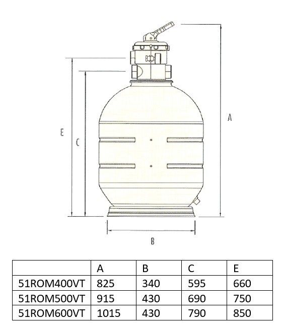 Filtr používá speciální filtrační medium nejčastěji křemičitý písek k zachycení mechanických nečistot z bazénové vody. Nečistoty se zachycují ve filtračním mediu uvnitř nádoby a zpět do bazénu je odváděna čistá voda zbavená mechanických nečistot. 6 cestný ovládací ventil umožňuje snadné čištění-propírání filtrační náplně. Pouze samostatná filtrační polypropylénová nádoba s ovládacím 6 cestným ventilem bez čerpadla.