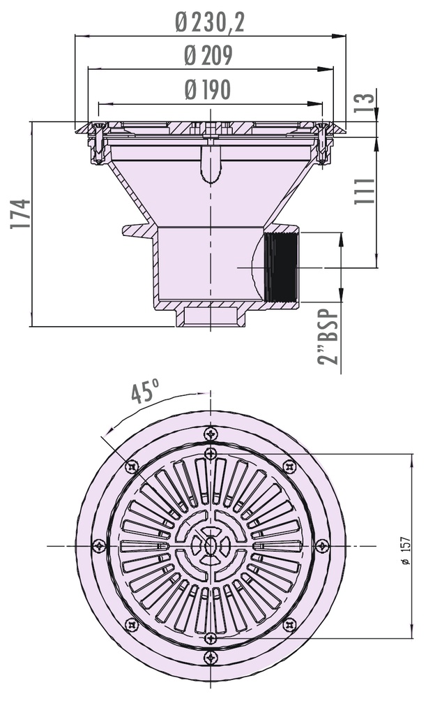 Výpust se připojuje bočním vývodem nalepením trubky o průměru 50mm.
