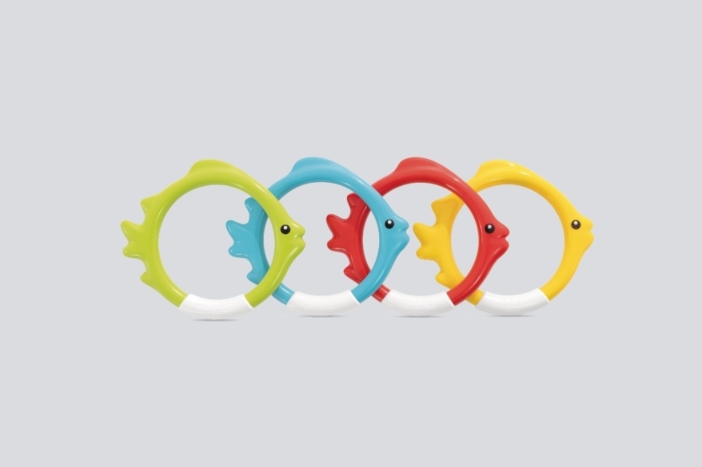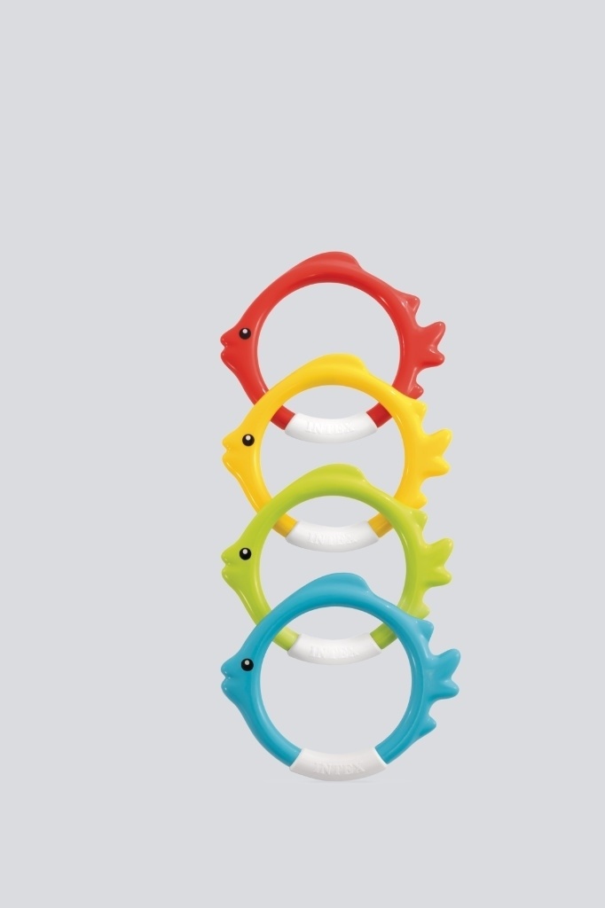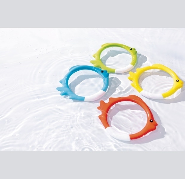 Součástí balení jsou 4 zábavné potápěcí kroužky v designu ryb v různých barvách.