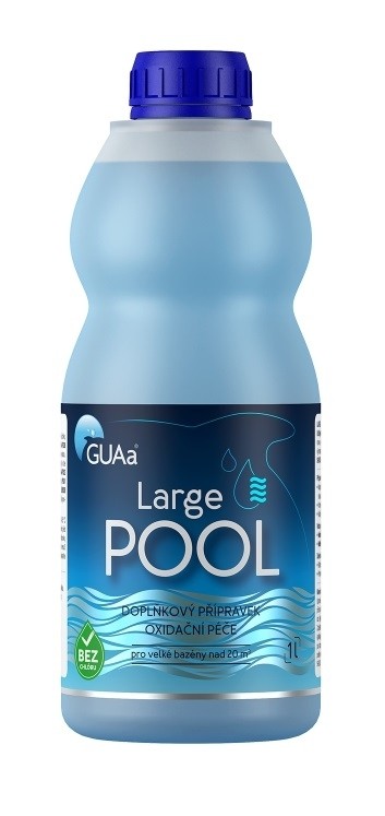 LARGE POOL je doplňkový přípravek v rámci konceptu OxiSystem™, který se uplatňuje při následné péči o bazénovou vodu po použití oxidačního přípravku.