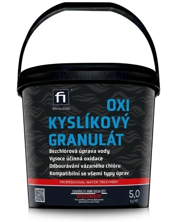Oxi Kyslíkový Granulát je pouze oxidant – nenahrazuje dlouhodobě dezinfekci (např. chlor/aktivní dezinfekční systém), ale výrazně zlepšuje kvalitu vody tím, že odstraní organické zatížení. V případě kontinuálního používání je nutné používat QAC, nebo jiný typ dezinfekčních látek.