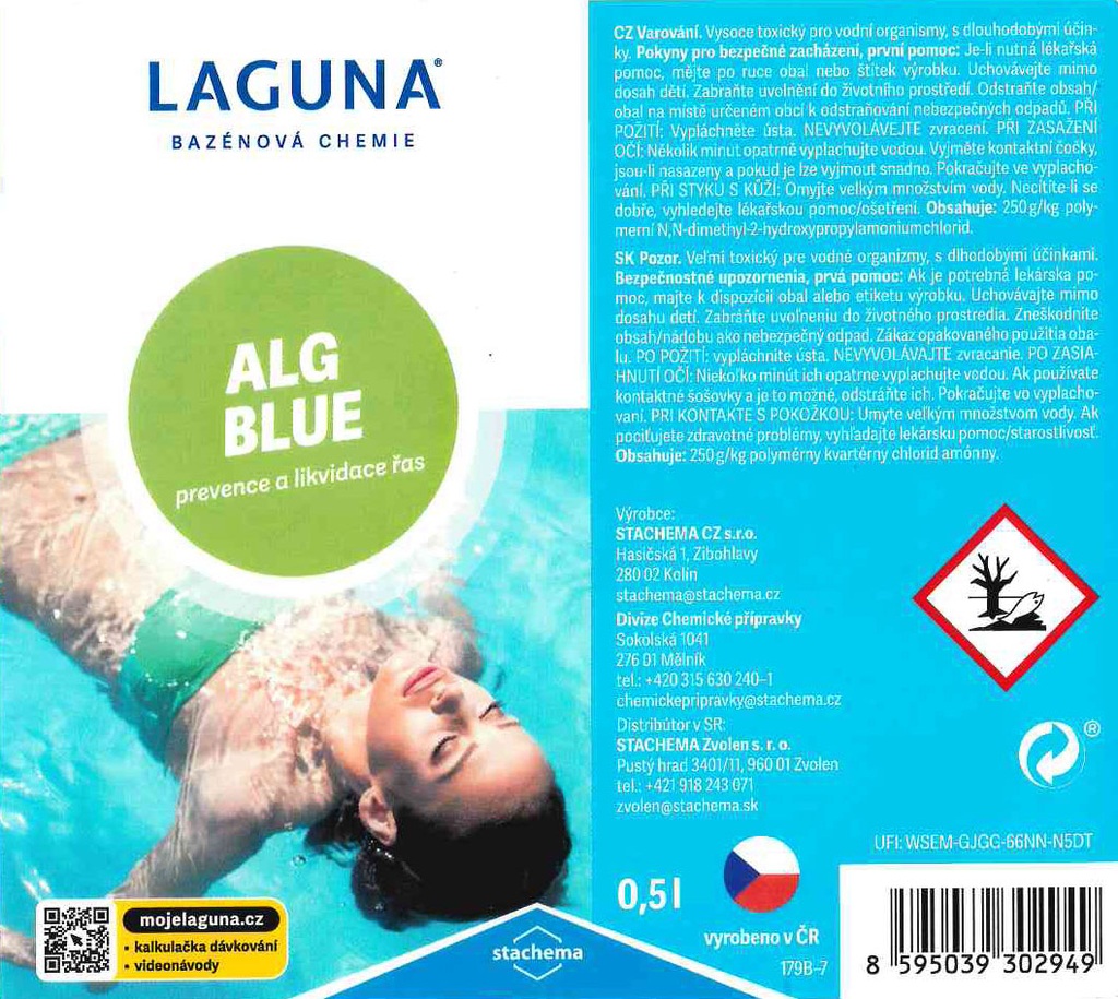 Přípravek ALG zabraňuje množení některých patogenních bakteriálních kmenů. Je možno je používat současně s chlorovými i bezchlorovými přípravky používanými k dezinfekci vody. Přípravek dávkujte přímo do bazénu při zapnutém filtračním zařízení. Počáteční dávku aplikujte po prvním napuštění bazénu na začátku koupací sezóny. Jestliže přesto dochází k viditelnému růstu řas, řasy zlikvidujte šokovými dezinfekčními přípravky (chlorovými nebo bezchlorovými), mechanicky odstraňte mrtvé řasy z bazénu a 48 hodin dávkujte znovu počáteční dávku. Jakmile nejsou v bazénu viditelné řasy, začněte používat udržovací dávku jedenkrát za 7 dní. Za horkého počasí nebo když je bazén intenzivně používán, přidávejte udržovací dávku v kratších časových intervalech. Po skončení koupací sezóny přidejte 15ml přípravku na každý 1m3 vody zbylé v bazénu. Tato dávka je opatřením proti růstu řas v průběhu zimního období.