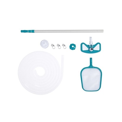 Čistící sada pro nadzemní bazény. Včetně vysavače s předfiltrem hrubých nečistot. Vhodné i pro bazény s nafukovacím límcem.